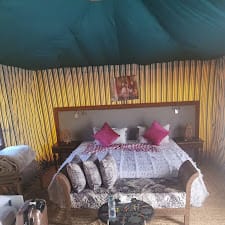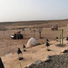 The place is very beautiful, you can see camps in the surroundings because in the end everyone wants to sell the night experience in the desert. The camp bicycles that you can use for free are ALL broken without exception, which doesn’t affect almost anyone because in principle no one uses them except me who wanted to try to go for a bike ride. If you want to do an activity, I recommend that you contact any of the quad or camel sites to do it because you avoid intermediaries who take high commissions and thus try to get the money more directly to the people. If you have any allergies, I recommend that you call the same day in the morning and remember because I am allergic to nuts and they couldn’t serve me the second course of dinner and they improvised something, but for what you pay they would have to have Paying more attention to this detail, they made the third dish separately and I can say that it was well adapted. Whether you are celiac or it is something more serious, insist a lot because it is the typical information that no one writes down and you can go without dinner. DON’T ASK FOR ALCOHOL, it’s super expensive and not good quality. I recommend the experience without a doubt, it is very expensive at least the rooms we reserved, it is quiet because the price is not affordable for everyone. In the end it is complicated to have all this installed in the desert (which is not sand dunes, so you know what you are going for) and hence the price.